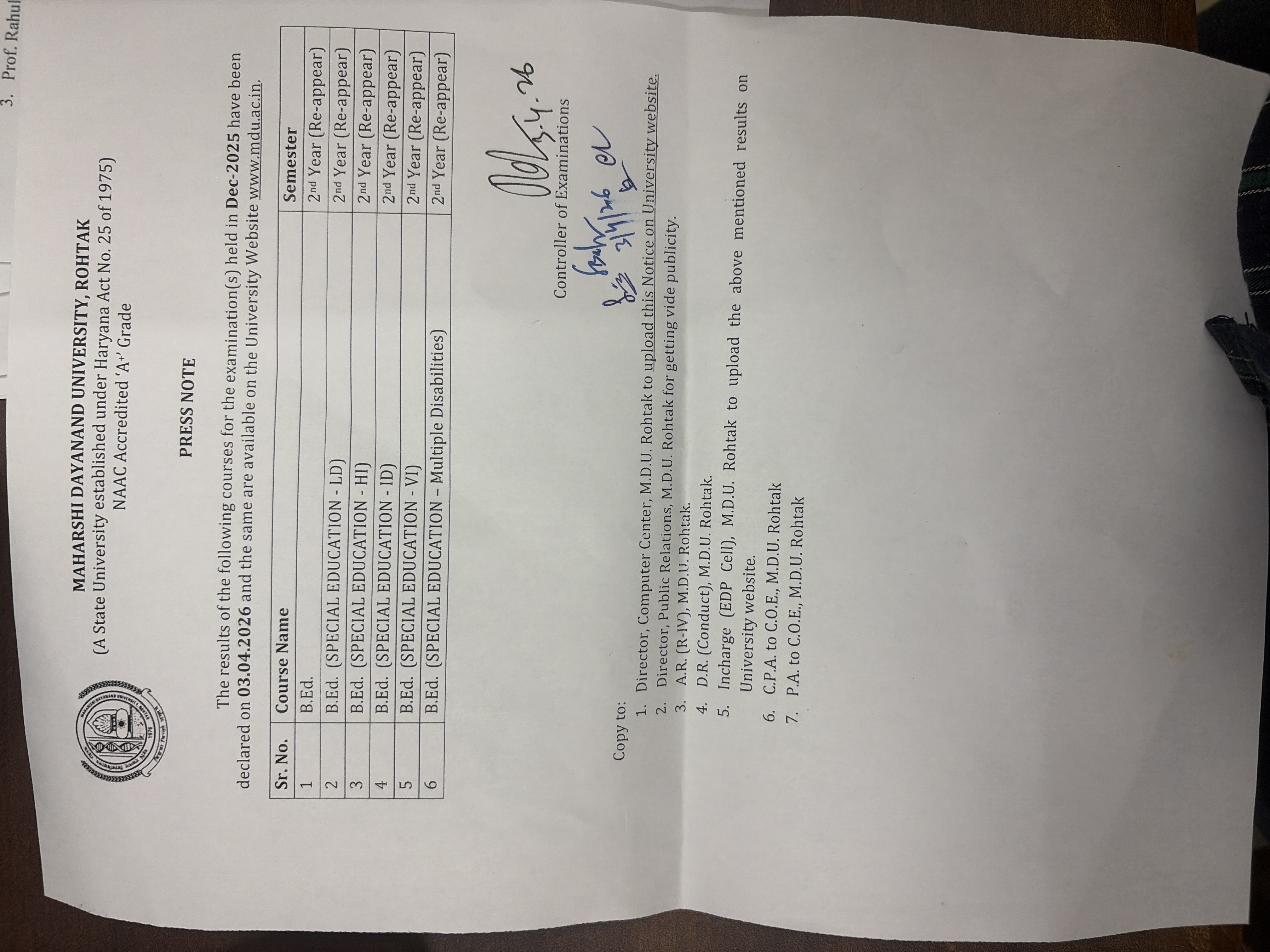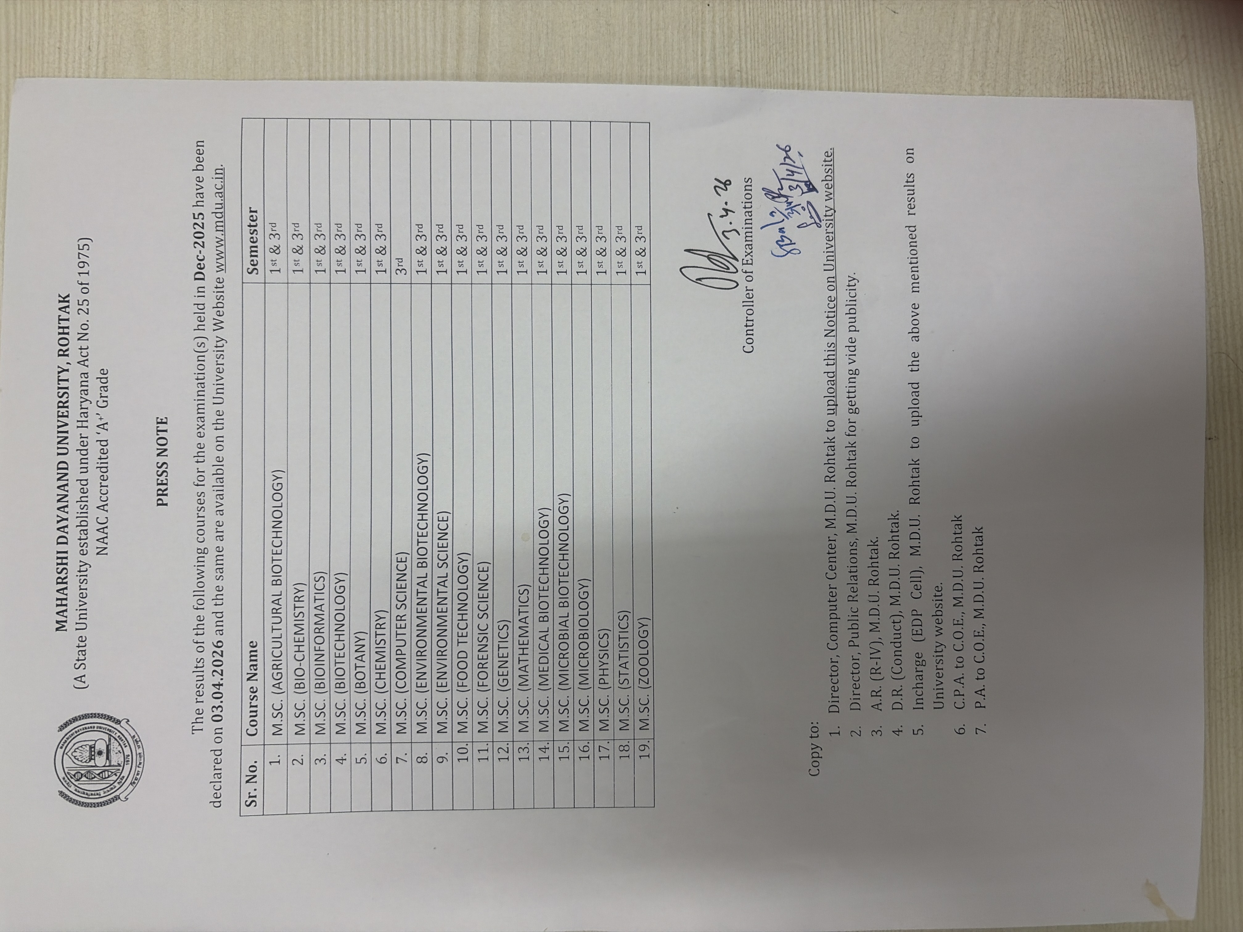 | 10 | Press Note Regarding Result Declared | (50607) | 03 Apr 2026 | Download |
