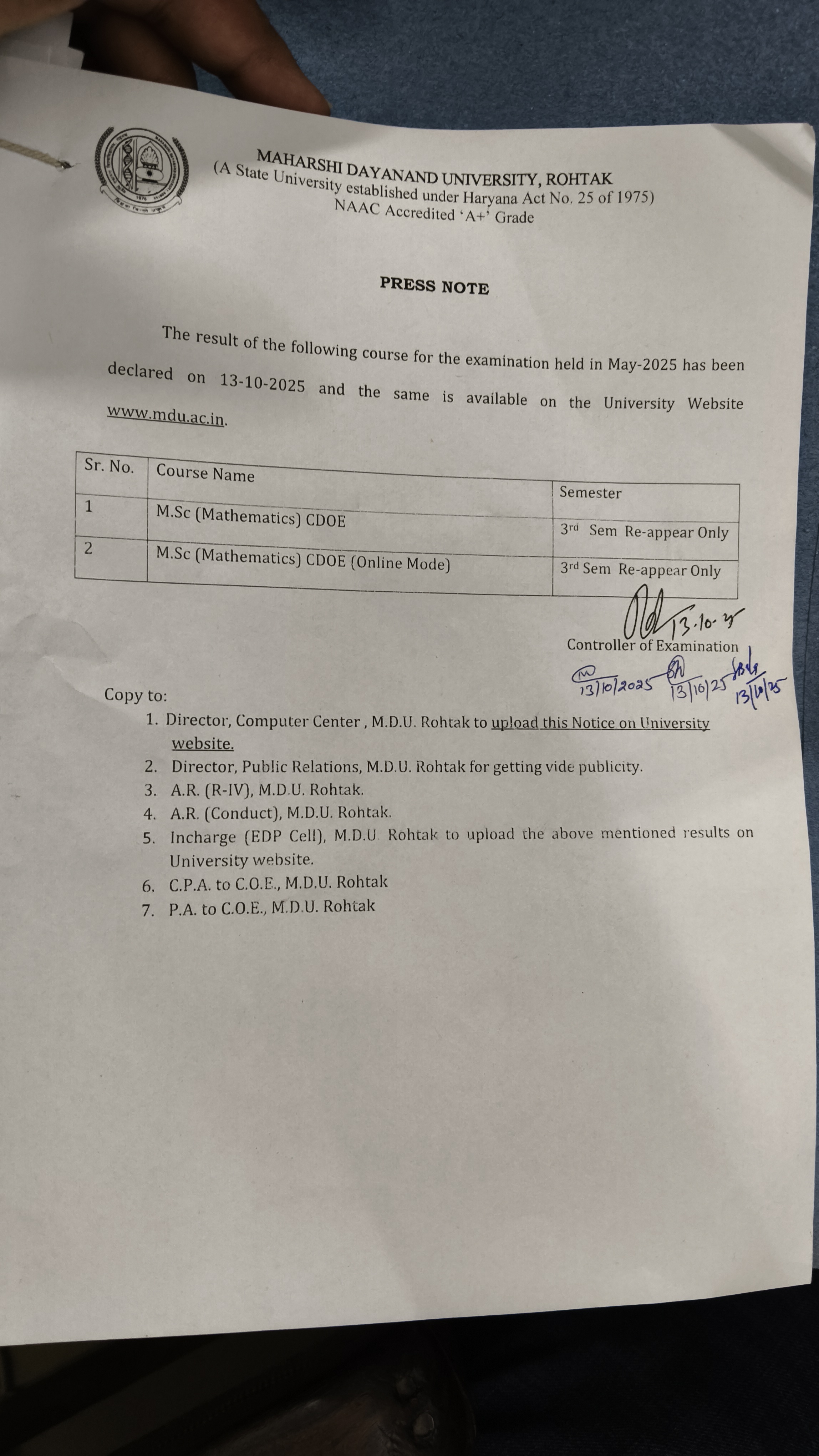 5 | Press Note Regarding Result Declared | (47330) | 15 Oct 2025 | Download |