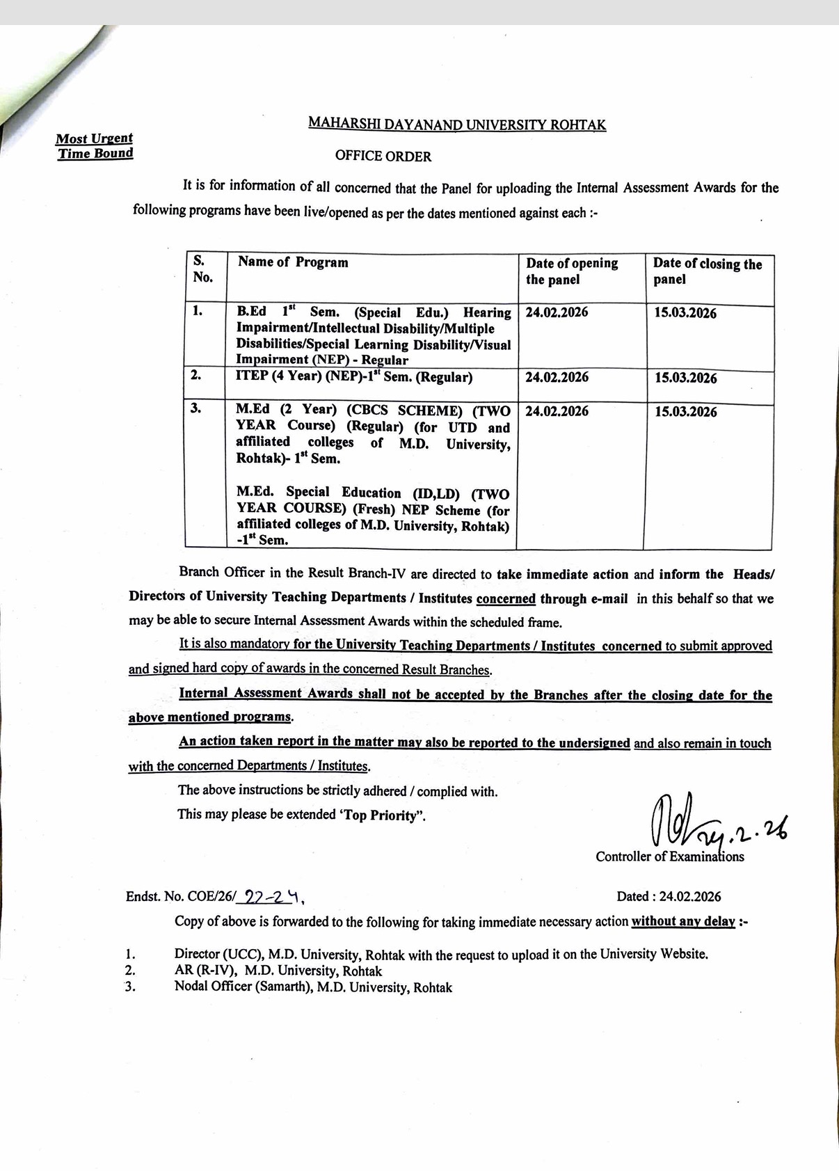 Corrigendum : Call for paper for the MDU Law Journal Jan. 2026, The Last Date for submission of Research Paper has been extended upto 28.02.2026