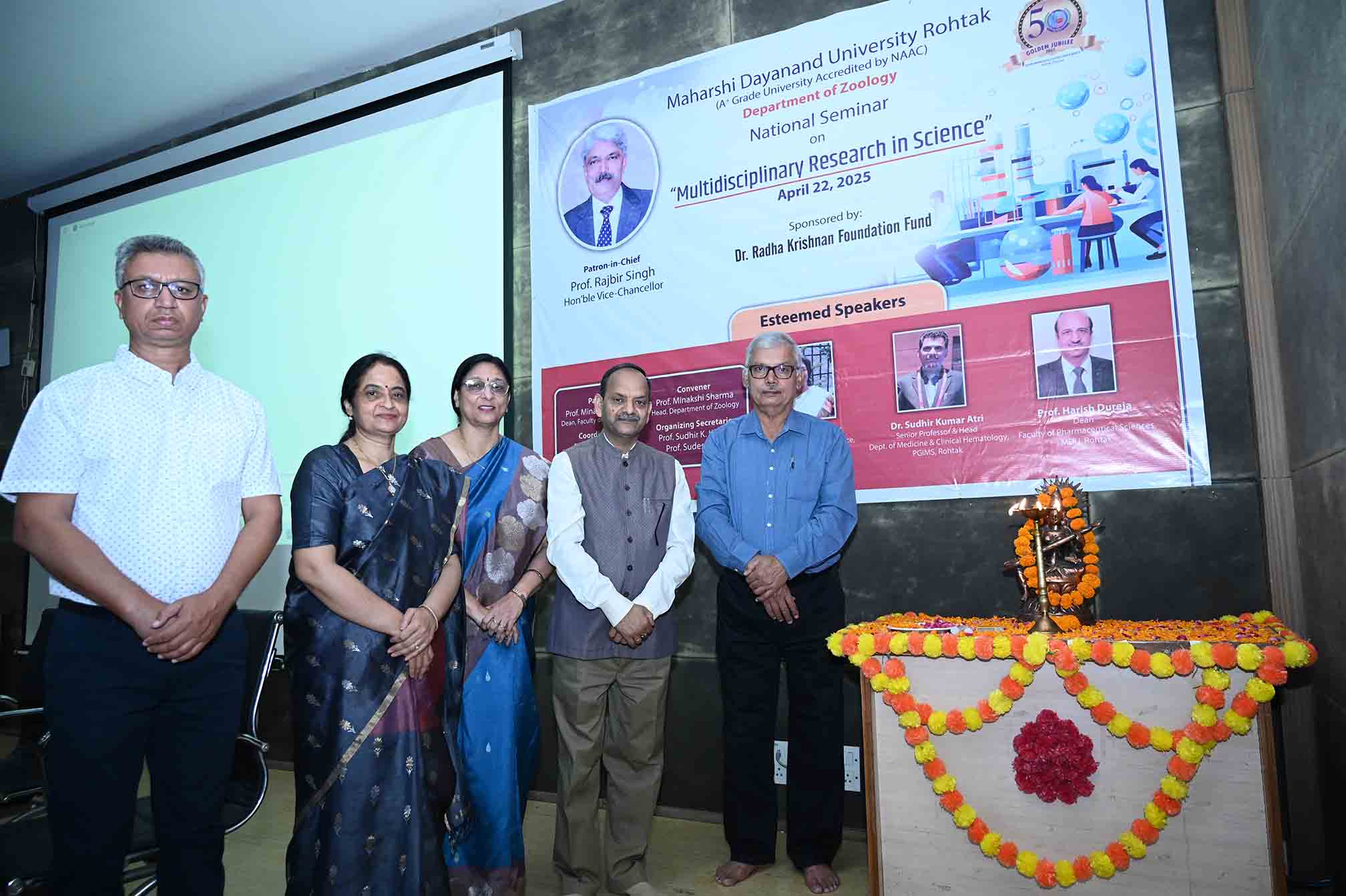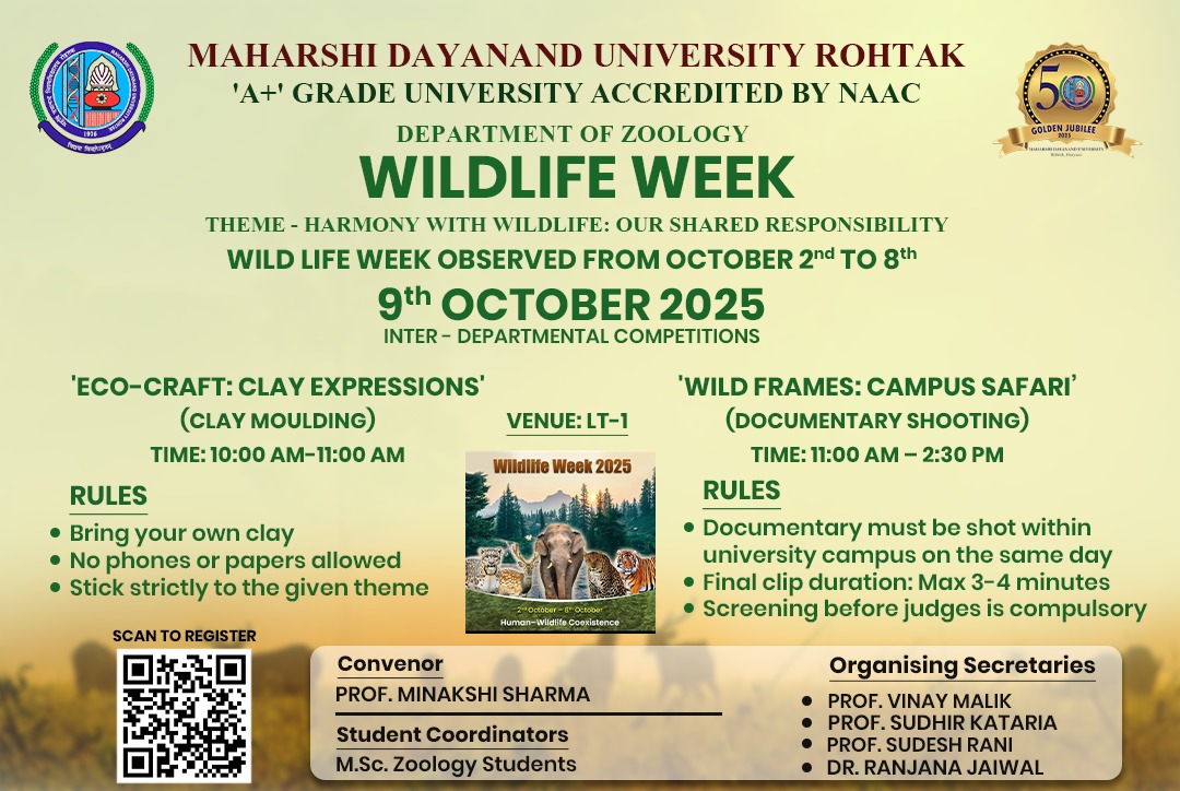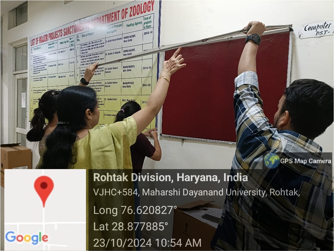 The Department of Zoology came into existence in June 2009. The department has completed 1st Phase of DST-FIST program. The Department offers Post Graduate Course in the subject of Zoology and PhD programme in different areas of specialisation in the latest research areas of life sciences as well as considering social problems. The department has research collaboration in the interdisciplinary research areas with institutes like IGIB, N. Delhi, NII, N. Delhi, NMRI, N. Delhi, PtBDSUHS/PGIMS, Rohtak, Kurukshetra University, Kurukshetra apart from interdepartmental research collaboration. The faculty has more than 200 research publication with an impact factor of 48 (TR), 12 Book Chapters, 06 books, and 06 proceedings of national seminar/conference with ISBN to their credit. The Department has successfully organized 07 National Seminars/Conferences since its inception. The department is actively engaged in research activities and successfully competed several research projects funded by UGC, DST, etc and is equipped with sophisticated instruments like HPLC, Lyophilizer, Gel Documentation system, PCR, Autoclave, UV-VIS Spectrophotometer, Potentiostat, Upright and Inverted Microscope, Deep refrigerator (-86˚C), Biosafety Cabinet etc. The faculty members of the Department are actively engaged in teaching and research to cater the need of the students and society.