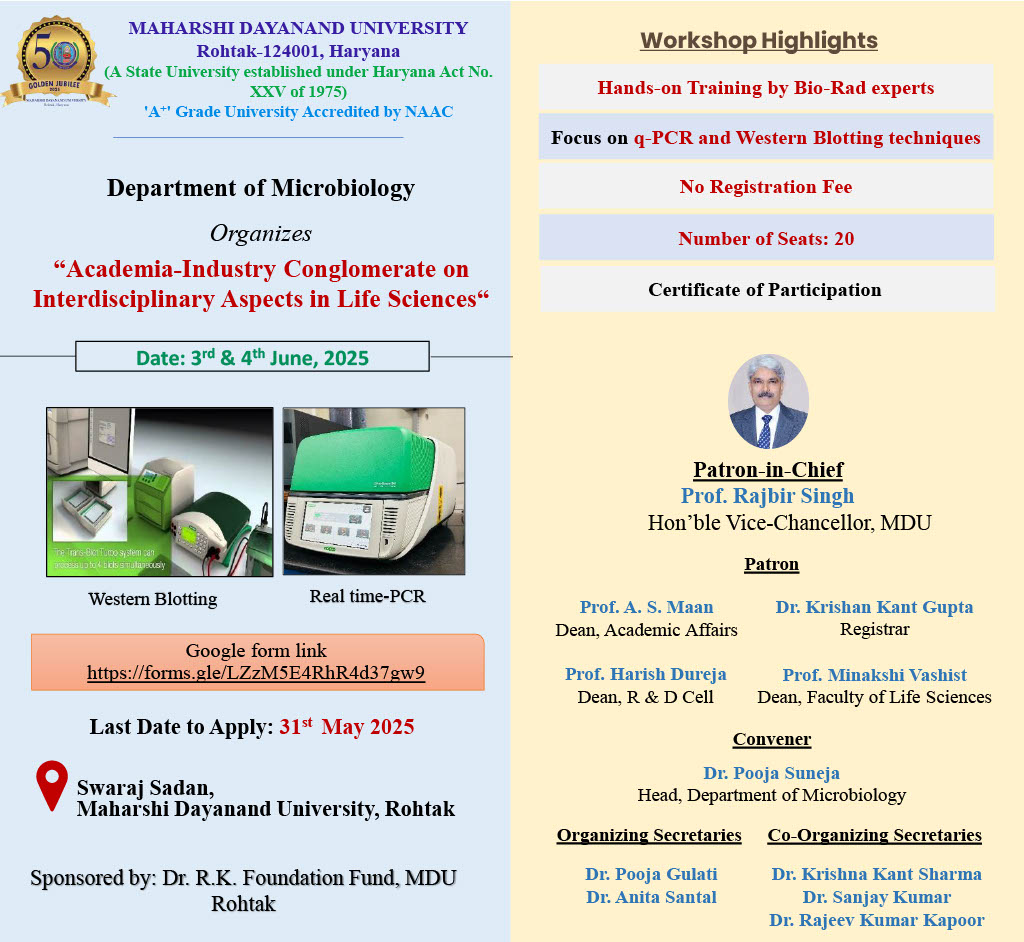 The Department is committed to encourage interdisciplinary teaching and research in the field of basic and applied microbiology by creating an innovative approach.