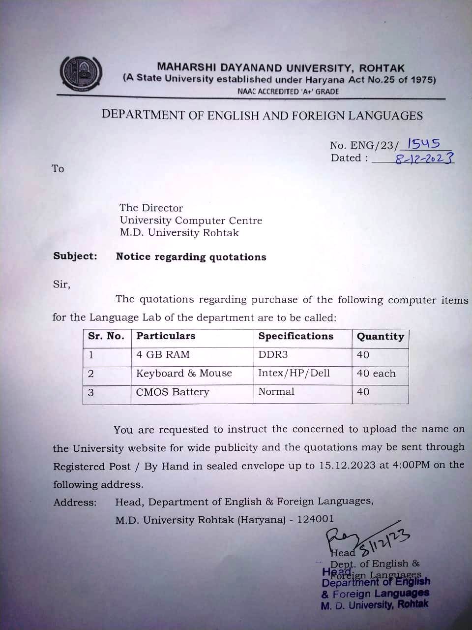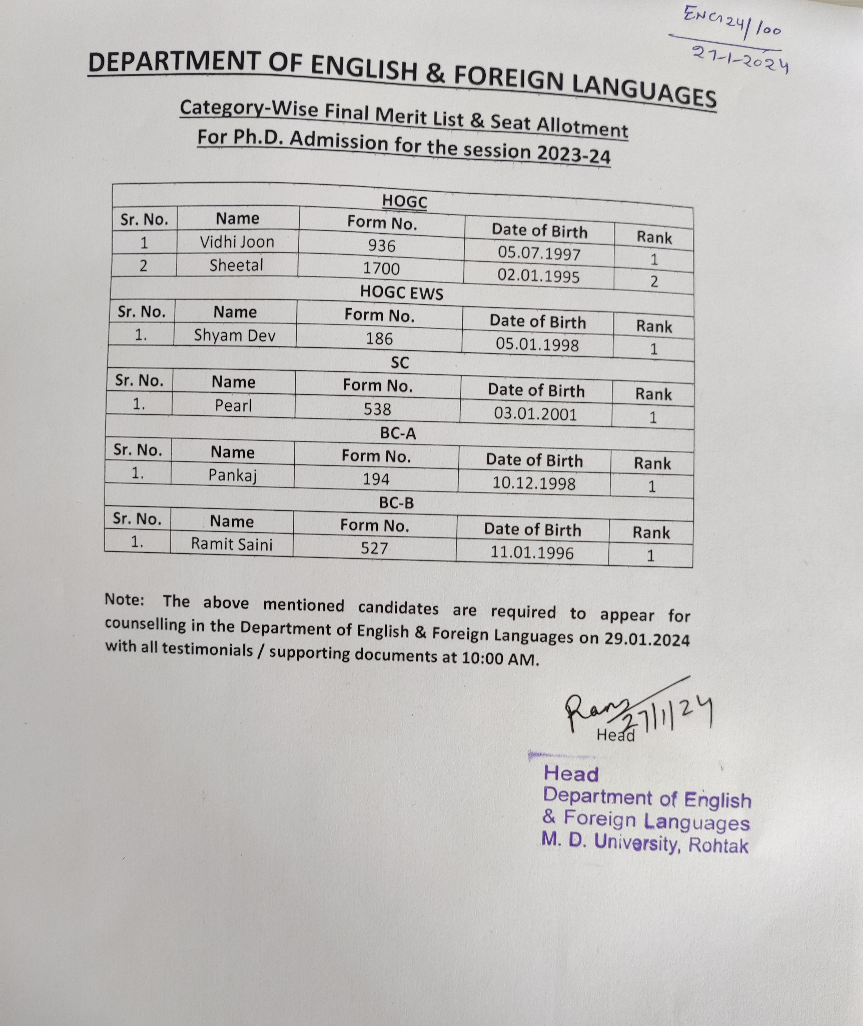 | Dr. Jaibir Hooda ( Nov 01, 2021 - Dec 31, 2022 ) |